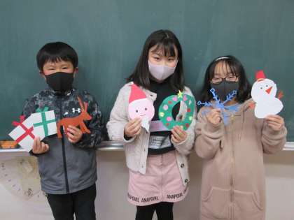 まず、保健委員会の人達は、水のみ場のシャボネットの補充や健康観察カードの配付を行っています。手洗いうがいをしっかりと出来るのは保健委員さんのおかげですね。次に、掲示委員会では、季節にあった掲示物を作っています。今月は雪だるまやリースを作りました。クリスマスが待ち遠しいようです。最後に、各学級一名が代表して活動する代表委員会では、上級生と一緒に校旗の掲揚をしています。上級生に教えてもらいながら活動することで、スムーズにできるようになりました。自分の役割に責任を持って取り組む姿が見られてとてもうれしく感じます。これからも一生懸命に頑張って欲しいです!