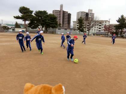 6ねんせいが、たいいくでサッカーをしていました。