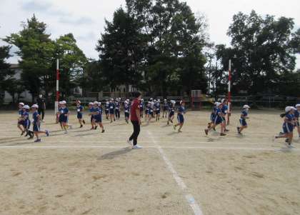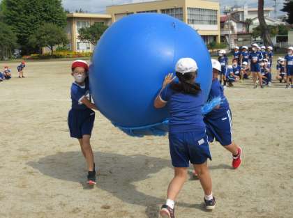 今日はいよいよ、外で団体種目の練習を行いました。体育館での練習と比べて走る距離が伸びたり、風が吹いたりして始めはなかなか上手くいきませんでした。しかし、持ち前の元気と明るさで練習を繰り返し、最後には上手に大玉を運ぶことができました。運動会まではまだ時間があるので、赤白どちらも勝利を目指して活動していきたいと思います。
