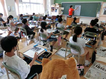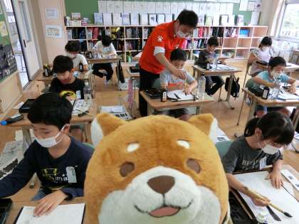3ねんせいが、しょしゃ(もうひつ)のじゅぎょうをしていたよ。