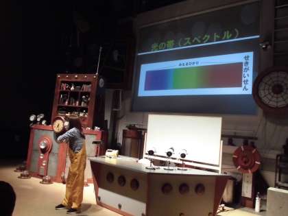 先日のムシテックでの様子です。最初に「サイエンスショー」を見ました。その中で、光の性質について楽しく学びました。