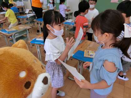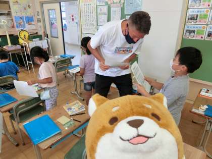 1ねんせいが、えいごのじゅぎょうをしていたよ。