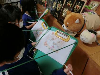 1ねんせいが、「にがおえ」をかいてくれたよ。
