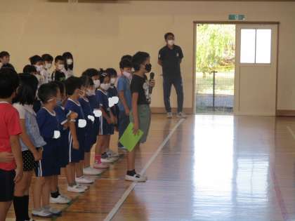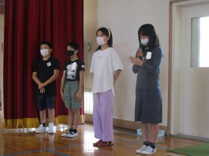 陸上交歓会に向けての壮行会を開きました。5年生の代表委員が中心となって、下級生をリードしていました。会の司会や励ましの言葉も立派にでき、高学年としての成長が感じられました。