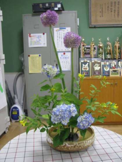 お花屋さんから6月にふさわしいギガンジューム,あじさいが届きました。