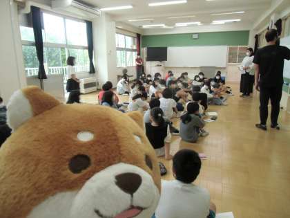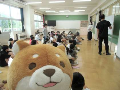 5年生がみんなで宿泊学習の振り返りをしています。がんばれたこと、反省しなければいけないことを各班から意見をあげ、みんなで学校生活にどのようにつなげていくか真剣に考えていました。5年生の今後の活躍をももしばワンも期待しています。
