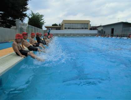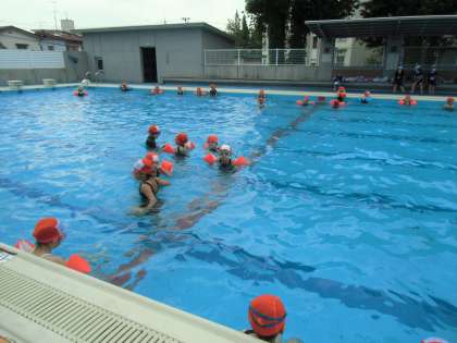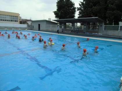 待ちに待ったプールの時間。お約束をしっかり守って行動する1年生です。ドキドキしながらプールの真ん中まで行ってじゃんけん遊びもすることができました。次の授業も楽しみです。