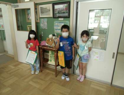 1年生がグループごとに学校探検をしました。校長室でももしばワンもお出迎えしました。ちょっと迷ったりしながら、学校のいろいろな教室を探検することができました。