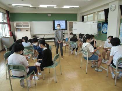 助産師 吉岡先生をお招きして「命の授業」が行われました。一人一人が自分も周りの人も大切にしながら成長していくことの大切さを学ぶことができました。グループワークを通して考えを深める姿が見られました。