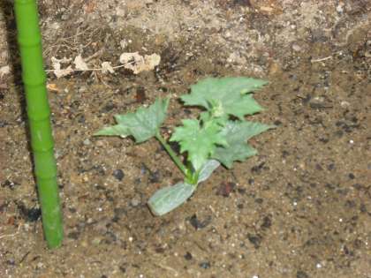 4年生 ヘチマの苗を植えました。