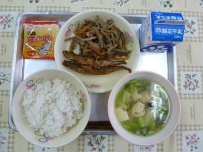 麦ごはん 牛乳 ししゃもからあげ 五目きんぴら