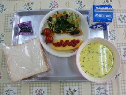 かぼちゃスープは、かぼちゃと牛乳が入っています。