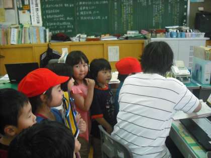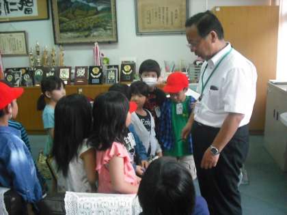 班長さんを先頭に、おめあての部屋へ。職員室の先生にサインをもらったり、図工室で高学年の授業を見せてもらったり、校長室のソファーに座らせてもらったりと、いつもはできない経験をたっぷりとさせてもらいました。