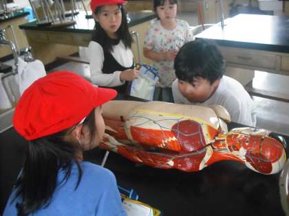 「ええっ!校長室に入ってもいいの!?」「理科室に、ガイコツがあるんだよね!見たいなあ」「のろわれちゃうよ!!」などと、前日から大いに盛り上がった学校探検でした。