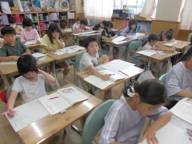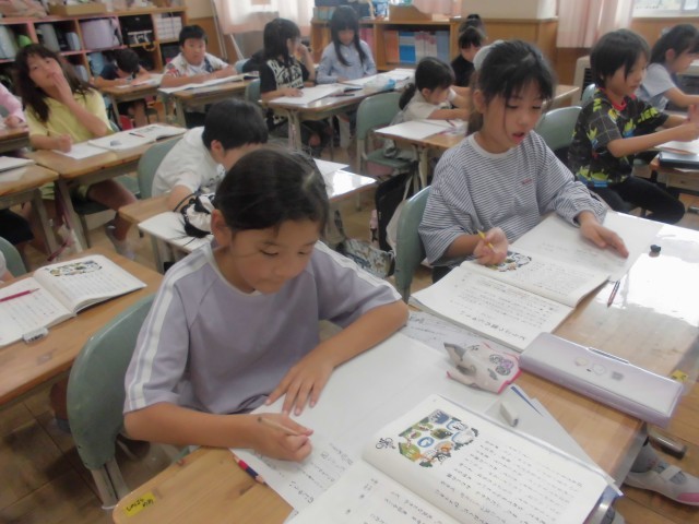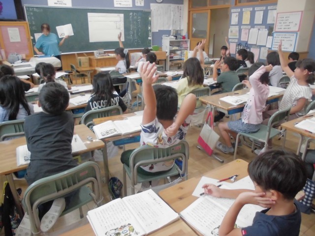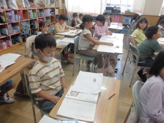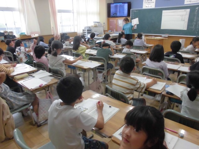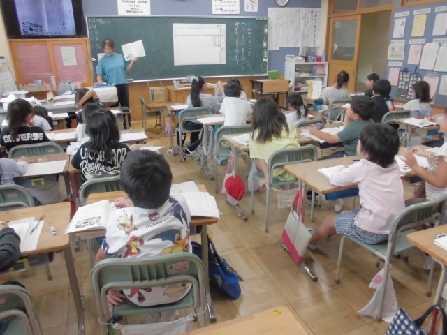 獣医さんが、動物園で、いつ、どんな仕事をしているか、その工夫や理由にも着目しながら、説明文を読み取る学習に取り組んでいます。文章や挿絵から分かったことや考えたことを話すことができるように、ワークシートを使って、みんな意欲的に読み取ることができました。