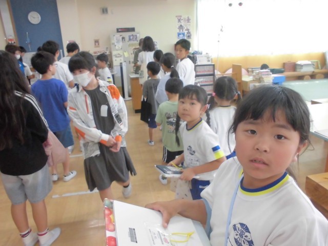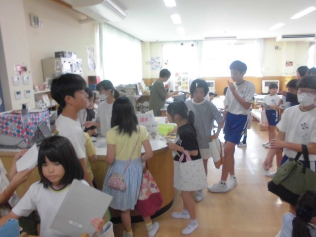 今日の図書室も大盛況です。週末なので一人2冊借りられるということで、「読みたい本をほかの人に先に借りられないように」とばかり、大変なにぎわい、大行列です。前期をしめくくり、来週には多読賞の賞状も伝達されます。読書のよさは様々ありますが、知識増加や読解力向上より、心の安定をもたらしてくれることが何よりの効果ではないかと思います。読書好きな富田っ子頼もしいです。