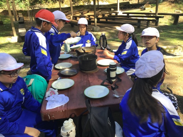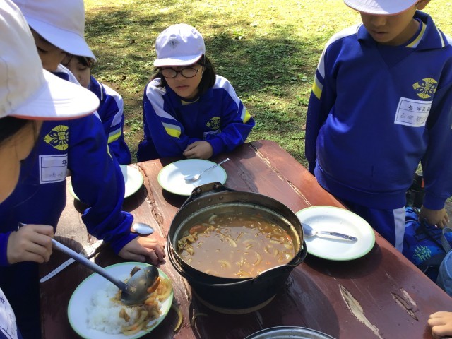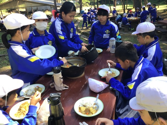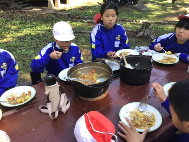 どの班も無事完成することができました。ご飯は上手に炊けました。カレーはちょっとスープカレーだったり、ジャガイモやニンジンが固かったりするグループもありましたが、自分たちで苦労して作ったカレーの味は特別おいしく感じたことでしょう。