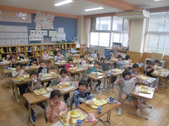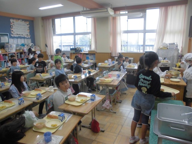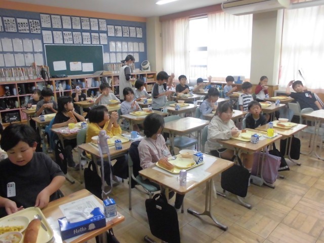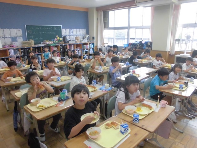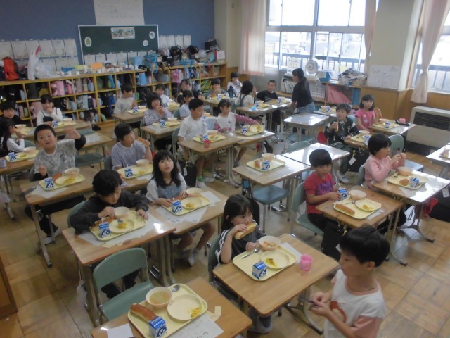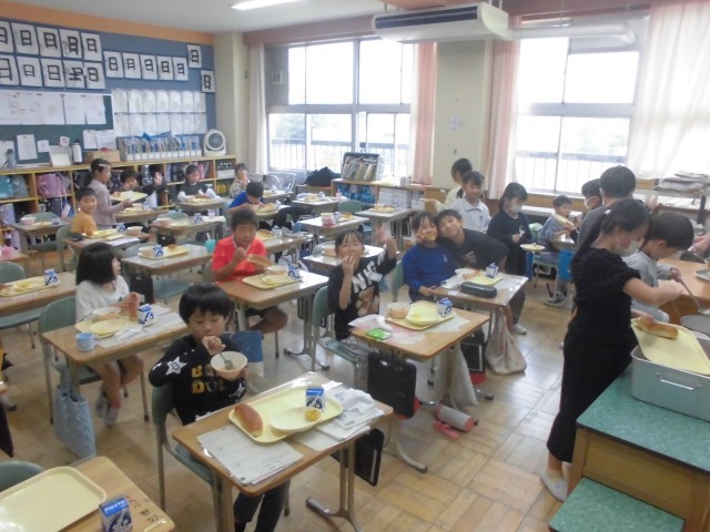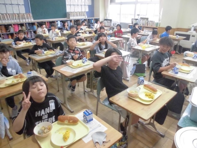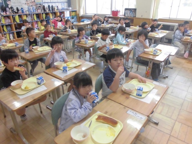 すっかり秋めいてまいりました。今日の献立は「旬の味 秋かぼちゃメニュー」ということで、さつまいもとかぼちゃのサラダ、肉団子と野菜のスープ、アップルパン、牛乳です。どの学級でも、さつまいもやかぼちゃをはじめ、日に日に深まる秋の味覚をおいしくいただいておりました。明日10月8日は、市小学校陸上競技交歓会(6年生出場)の関係で、全校弁当の日のとなります。4年生は明後日10月9日も郷土を学ぶ体験学習で弁当となります。よろしくお願いいたします。
