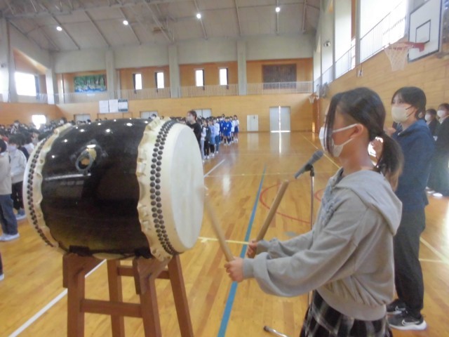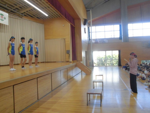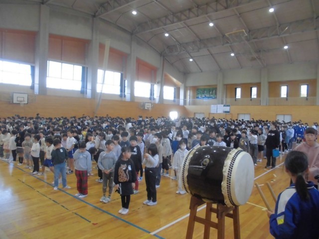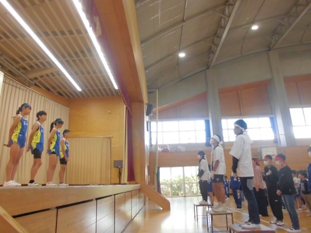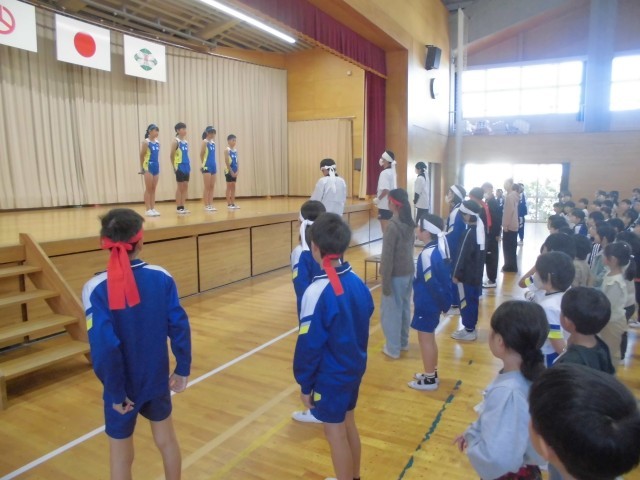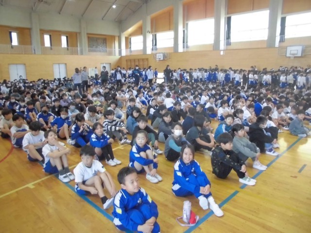 本日の全校集会では、11月2日(日)に横浜市日産スタジアムで開催される全国小学生陸上競技交流大会に県チャンピオンとして出場するリレーチームの健闘を祈り、全校児童でエールを送りました。全国大会に出場することはもちろんすばらしいことですが、創立150周年という記念すべき年に全国大会出場を果たすことができたことは大変喜ばしいことです。保護者、地域の皆様の応援よろしくお願いいたします。