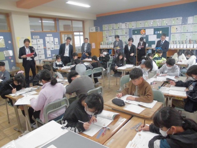 本日、市教育委員会による学校訪問をいただきました。午前は16名の指導助言者に、すべての学級の授業を参観いただきました。午後は、学校課題の解消や授業改善について、研究協議をもとに指導助言をいただきました。「学ぶ喜び 感動のある学校」の実現に向けて、本校教育活動の充実に取り組んでまいります。