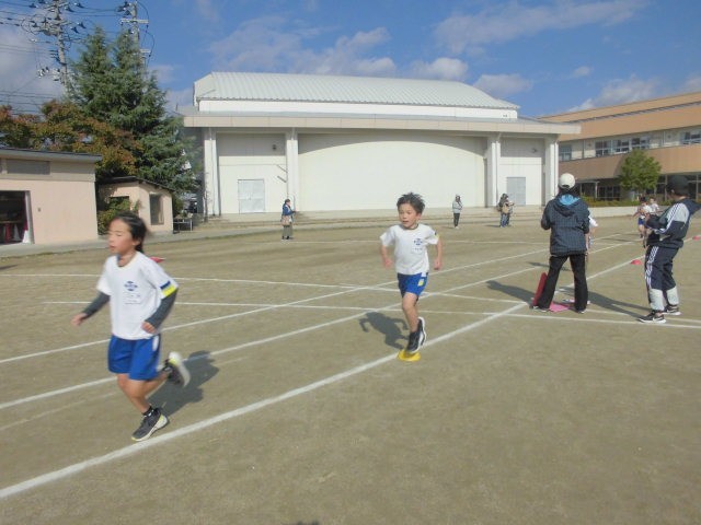 気温は低かったですが、風もなく、まずまずの持久走日和の中、たくさんの保護者の皆様の応援をいただきながら、記録会を無事開催することができました。自己記録の更新を目指して、自分の限界にチャレンジする姿がとても頼もしく感じました。走り終わった後、くたくたに疲れているのに、「がんばれー」と、仲間を応援する姿もすばらしかったです。朝からたくさんの応援ありがとうございました。