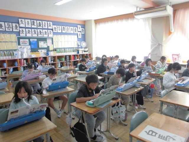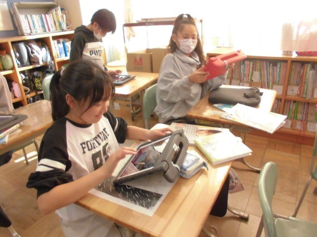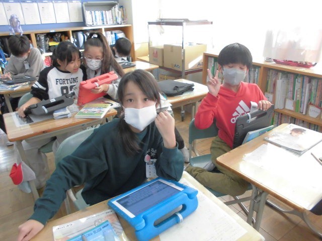 5校時目、4年生は、音楽と理科の授業をしています。理科では、昨晩は「スーパームーン」でありましたが、月の観察記録やヘチマやゴーヤの観察のまとめをタブレット端末も使って、友達と協力し合いながら、上手にまとめていました。音楽では、茶色の小瓶やゆかいに歩けばを楽しそうに演奏したり、歌ったりしていました。二分の一成人式を終えた4年生、ひとまわり大きく成長したように感じました。