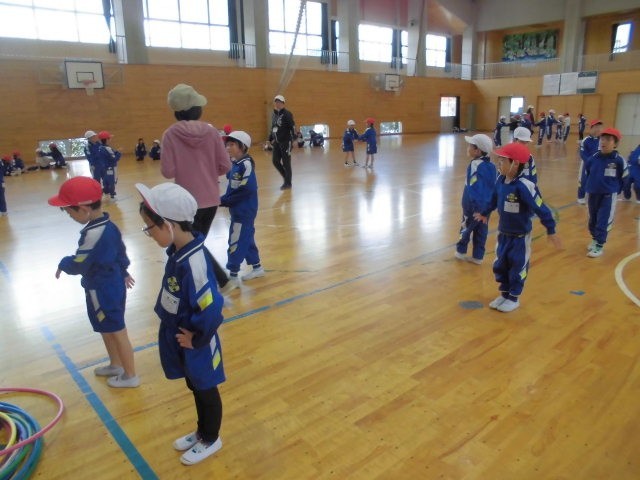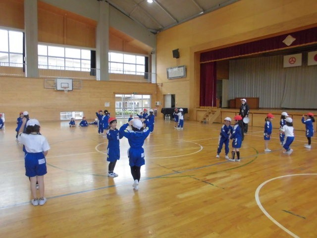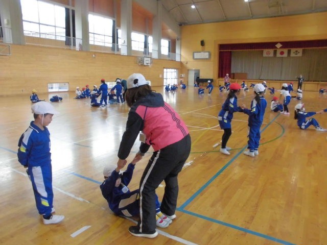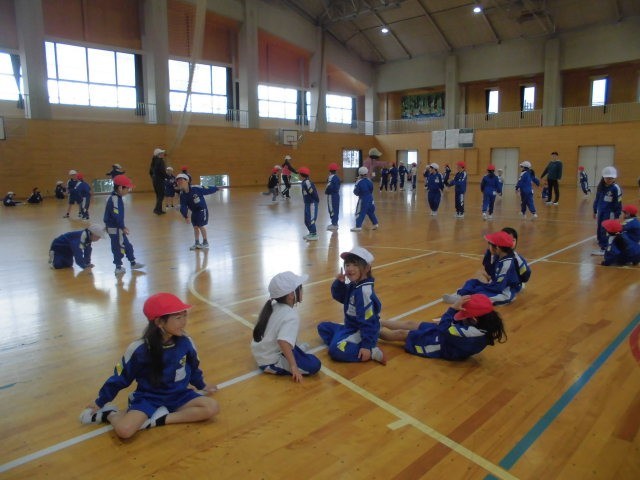 木枯らしの吹く一日でありましたが、寒さや病気に負けない体力向上のために、体育館で基本の運動に元気よく取り組んでいました。冬季も屋内でできる「なわとび運動」や友達と簡単にできる「基本の運動」に励み、運動の楽しさや運動感覚を養っていきたいと思います。