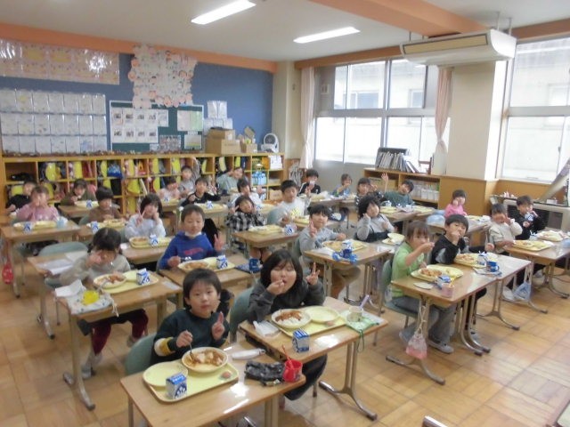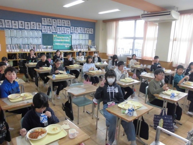 今日の献立は、ハヤシライス、大根と白菜のサラダ、150周年お祝いデザート「いちご(15)ゼリー」、牛乳でありました。みんなおいしくいただくことができていました。今週末14日(金)は「マイ弁当の日」となっています。①献立を考えたり、②買い物を手伝ったり、③お弁当の調理をお手伝いしたりするなど、自分ができるお弁当作りにチャレンジできるよう学校でも働きかけていきます。