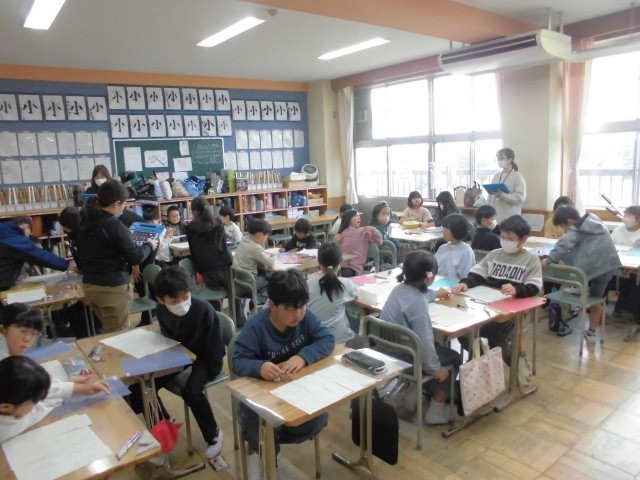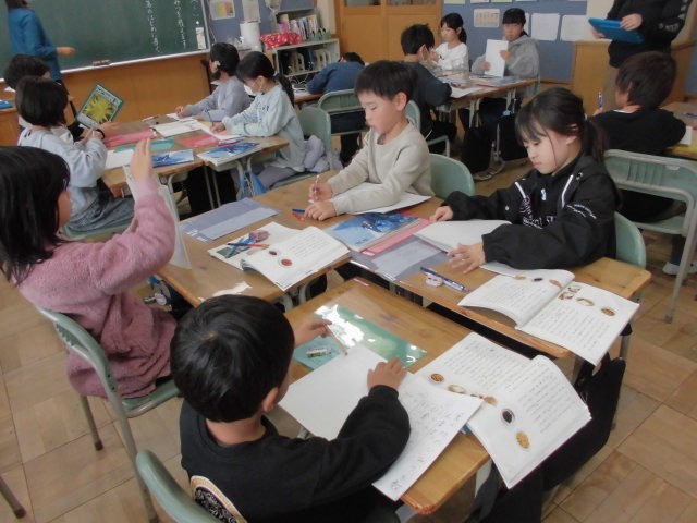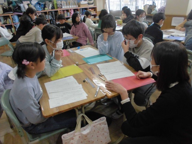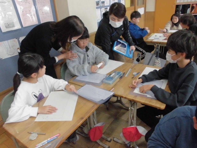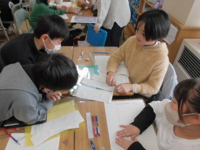 学んだ筆者の説明の工夫を生かし、よりよい組み立てを考えることを通して、自分の選んだ材料について、書き方を考えることができる授業をめざし授業研究を行いました。分かりやすい文章の組み立てや例の書き方について、自分の意図をグループ内の対話を通して、深く考え、文書の組み立てに生かそうとすることができました。文章のまとまりをつなぐ接続詞の的確な使い方にも気をつけて文章構成することができました。