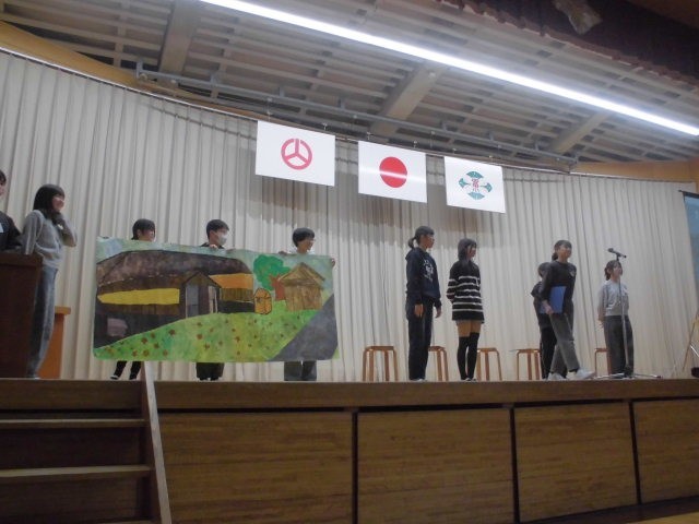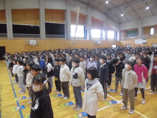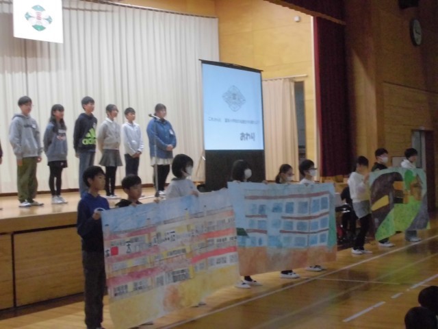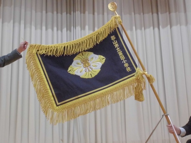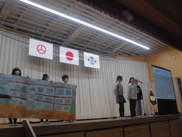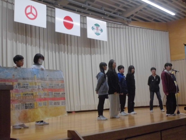 本日、感染防止対策のため延期となっていた記念式典を開催いたしました。150周年を大きな節目に富田小同窓会寄贈の新調された校旗の披露の後、同窓会長様より「我がふるさと 富田町」をテーマにご講話いただきました。福島県より古い富田小学校、小学校時代の思い出、逢瀬川を守る活動等のお話をとおして、心もからだもたくましく、世のため、人のために活躍できる富田っ子であってほしいという熱い思いが子どもたちに響いておりました。逢瀬川のうた~キラキラのもと~」を全員で合唱し、いよいよ150周年劇団(6年生)による「富田小学校の150年を振り返る」です。明治8年の開校から現在に至るまで、150年に及ぶ長い歩みをユーモアをおりまぜながら、堂々と、楽しく演じてくれました。劇の最後には、学年ごとに未来に向けて頑張りたいことも声をそろえて元気よく発表してくれました。富田小の歴史を振り返り、改めて富田小のよさをともに分かち合い、富田っ子の誇りを感じることができた時間になりました。この模様は、12月5日の授業参観前に、保護者の皆様にもご覧いただく予定です。