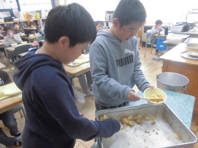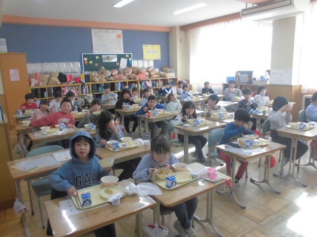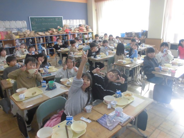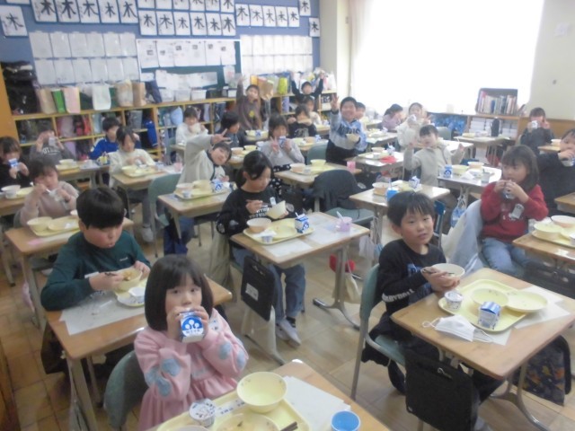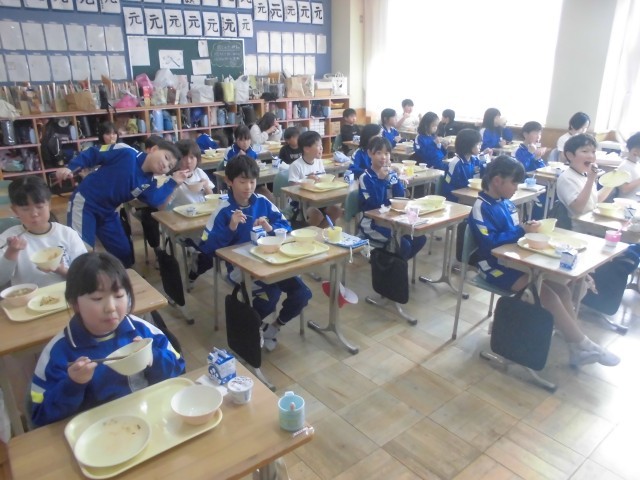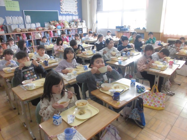病気に負けない強いからだつくりに必要な「免疫力」を高める食材をふんだんに使ったメニューです。キムチチャーハン、春雨のごま酢あえ、もやしのスープ、ヨーグルト、牛乳です。キムチやヨーグルト等の発酵食品、ビタミンやたんぱく質を多く含む野菜や牛乳などの食品をバランスよくとり、免疫力を高めていけるように、ご家庭でもよろしくお願いいたします。