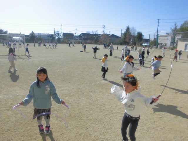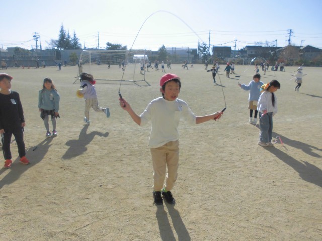 今朝は、車のフロントガラスが凍るほどの寒さでありましたが、日中は12月とは思えないほど暖かく穏やかな天気となりました。業間、子どもたちは元気になわとびの練習に取り組んでいました。インフルエンザ等の感染拡大が予断を許さない状況ですが、しっかり食べて、しっかり運動して、しっかり寝ること、ご家庭での健康管理のための働きかけをよろしくお願いいたします。