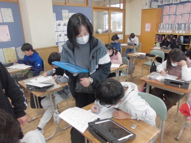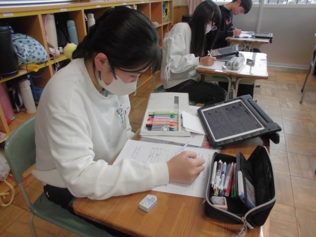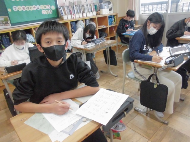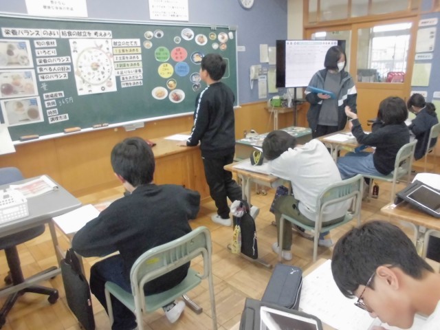 今日は6年生が、望ましい食習慣について考え、健康な体をつくるための栄養のバランスのとれた献立づくりに取り組んでいました。栄養教諭のアドバイスのもと、主食、主菜、副菜、汁物のメニューを食材の栄養ベースで考えていましたが、栄養の偏りがないようにメニューを考えるのはなかなか難しいようです。毎日、ご飯を作ってくれるおうちの方に改めて感謝です。
