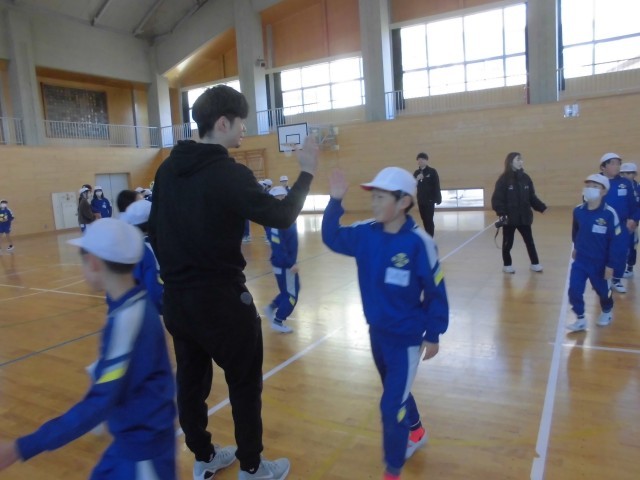 今日は、快進撃を続けている福島ファイヤーボンズの選手、スタッフの皆様をお招きし、「夢チャレンジプログラム」を実施しました。前半のバスケットボールクリニックでは、体幹トレーニングや4グループに分かれてのシュート対決で盛り上がりました。後半の講話では、チームの花形プレーヤー中野司選手がプロになるまでに、子どものころからどのようなことを大切にしてきたか、お話しいただきました。子どもたちは目を輝かせながら聞き入っておりました。富田っ子の「主体的な学び 挑戦する心の育成」のために、お忙しい中来校いただき誠にありがとうございました。