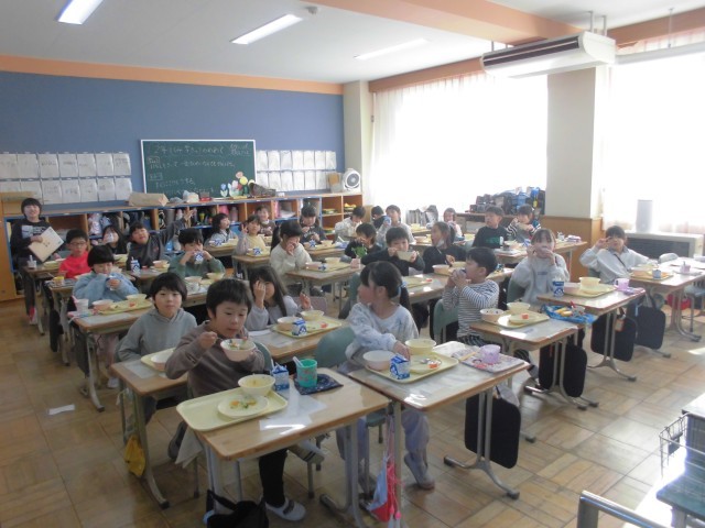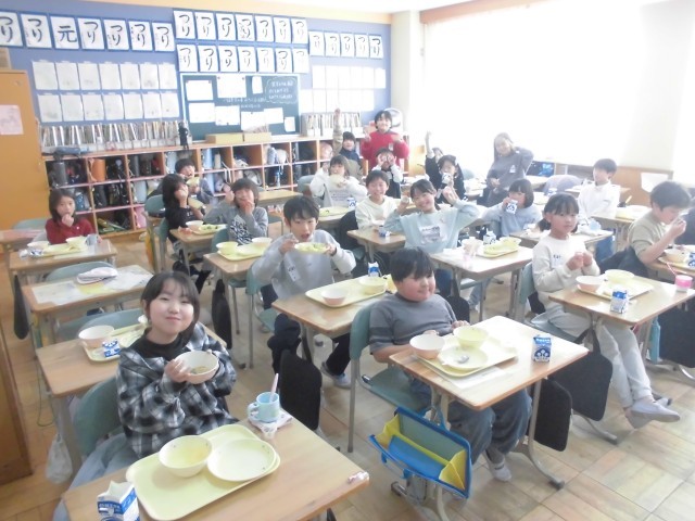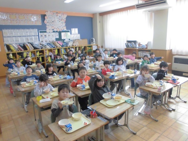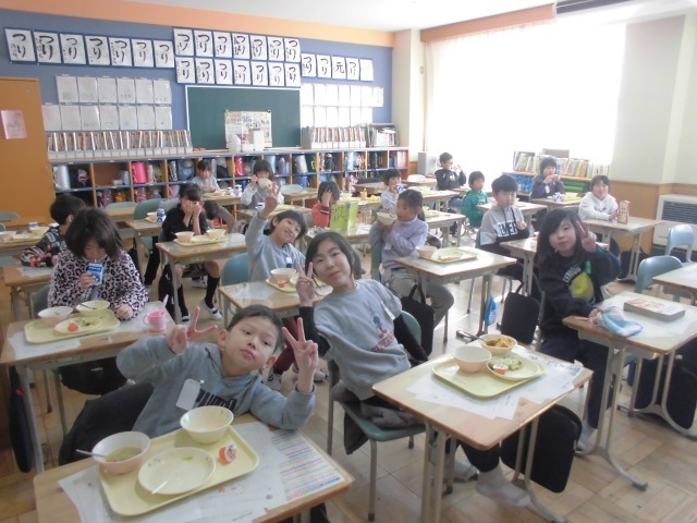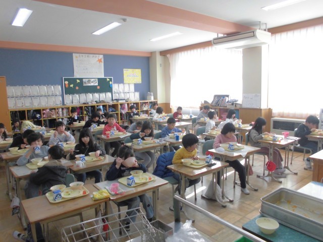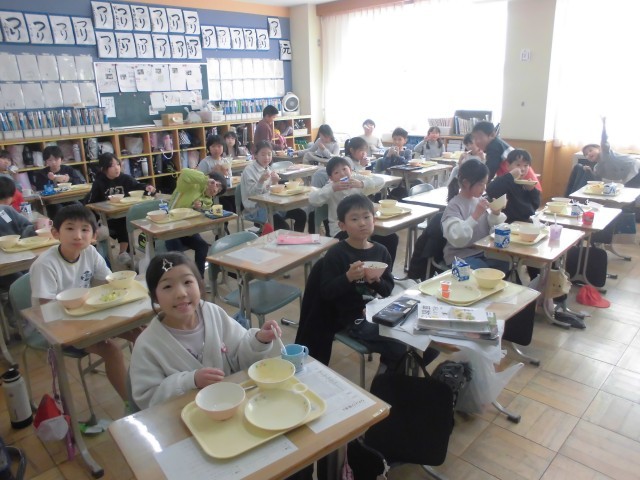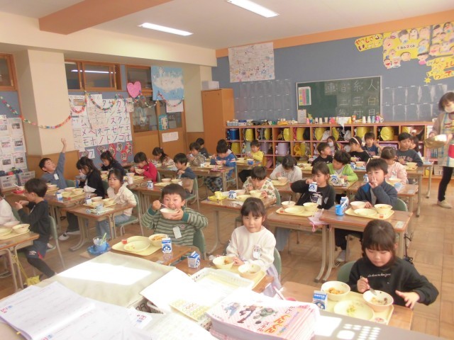 今日は、2学期最後の給食ということで、お楽しみ献立~スパイシーピラフ、ABCスープ、ブロッコリーとカリフラワーのサラダ、牛乳、いちごゼリー~でありました。クリスマスを感じさせるちょっとおしゃれなメニューに子どもたちも喜んでおりました。2学期も残り2日間、22日(月)はお弁当の準備よろしくお願いいたします。