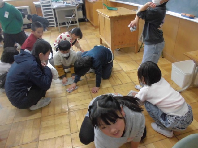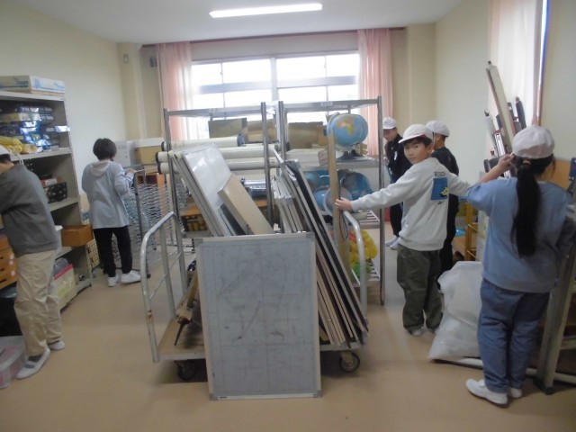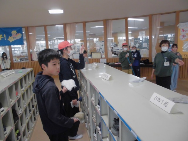 今日は5校時目に全校一斉に大掃除(美化活動)を行いました。教室や廊下、机やロッカー、下駄箱等、一年間の汚れをみんなで協力し合って、隅々まできれいにすることができました。おうちの大掃除も頑張ってくれることでしょう。