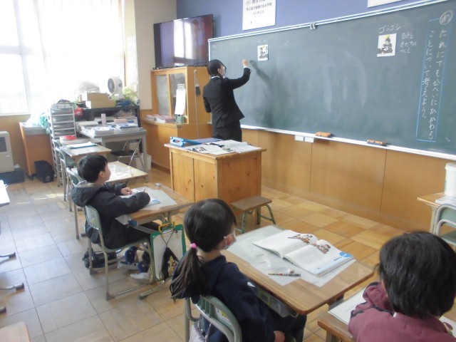 教材文「つくえふき」をもとに、差別された側の心情を共感的に理解することを通して自分と相手の関係だけで判断しないことや誰にでも公平にかかわることの大切さについて、子どもたちは自分事として捉え、みんなで考えを深め合うことができました。今日の授業で考えたことを生活に生かし、互いを尊重し、思いやりの心をもって、行動できるように働きかけてまいります。