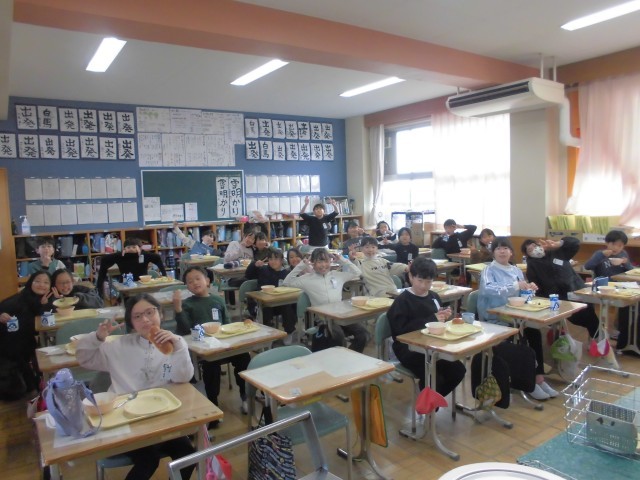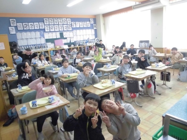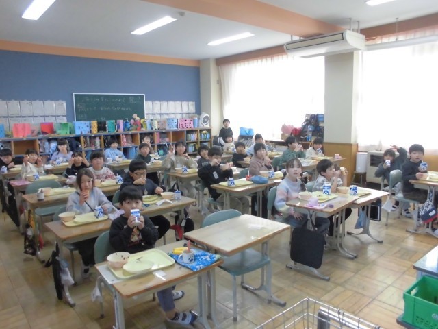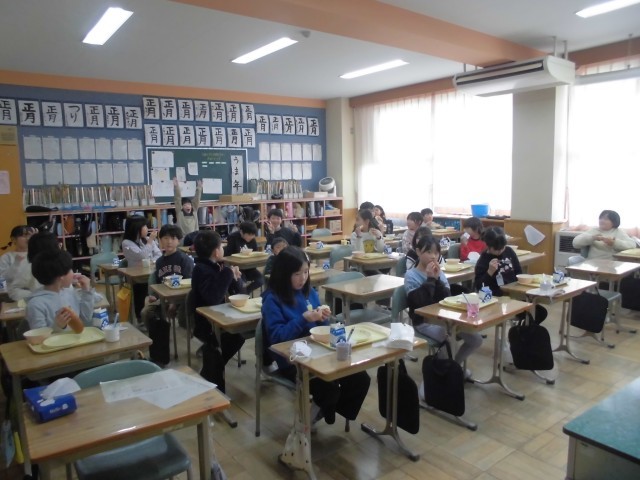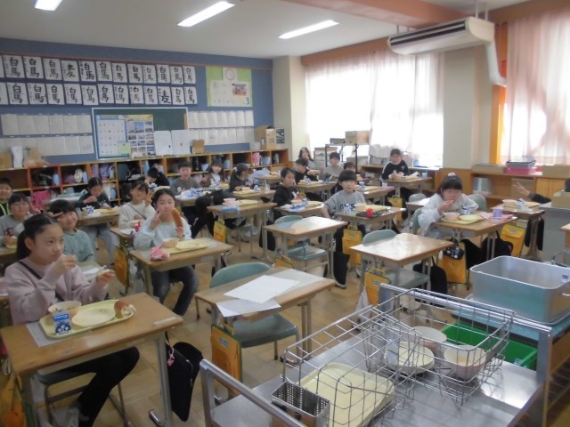 今日の献立は、世界の料理シリーズの韓国キムチスジェビ(すいとん)、アップルパン、小松菜のサラダ、牛乳です。アップルパンのほどよい甘さと、あつあつのキムチすいとんの辛さがマッチして、子どもたちは大変おいしくいただいておりました。風邪に負けないよう、しっかり食べて、しっかり運動して、睡眠も十分にとりましょう。