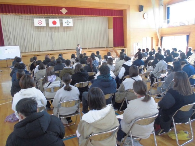本日は、令和8年度入学される児童の保護者のみなさまにお集まりいただき、入学までの準備や手続き等について説明させていただきました。4月6日の入学式まで保護者のみなさまには、様々な準備をいただきますが、子どもたちが安心して学校生活をスタートできますよう、よろしくお願いいたします。