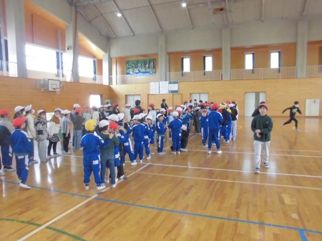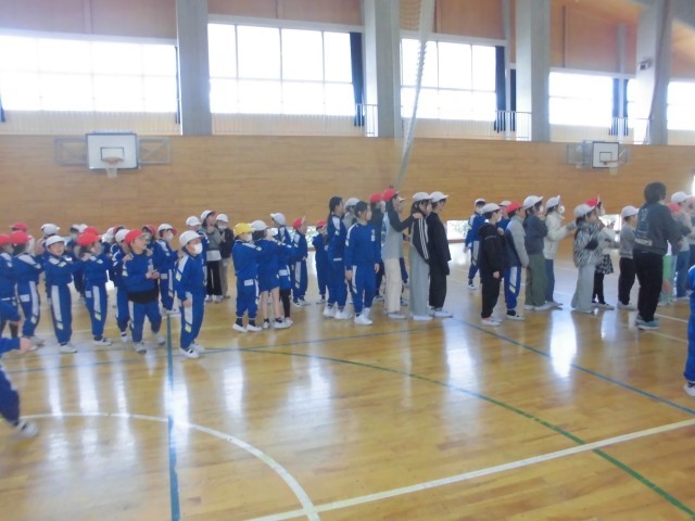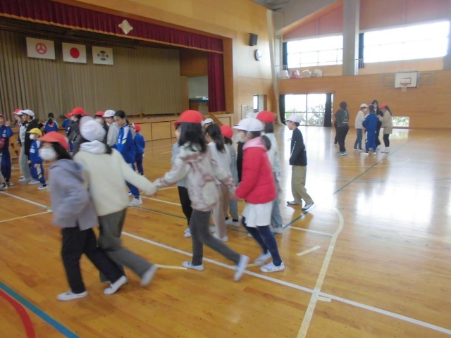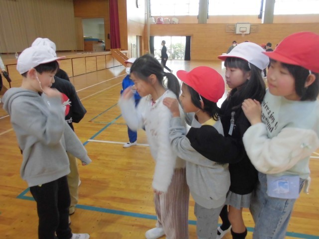 今日は、業間休みに集会委員会のみなさんが準備してくれた「お楽しみ集会」を開きました。1年生から6年生までみんなが楽しめるように「じゃんけん列車」を行いました。音楽に合わせながら、互いにじゃんけんし、負けた子は勝った子につながります。短い時間でもみんな十分にふれあい活動を楽しめたようです。集会委員のみなさん、楽しい集会活動ありがとうございます。