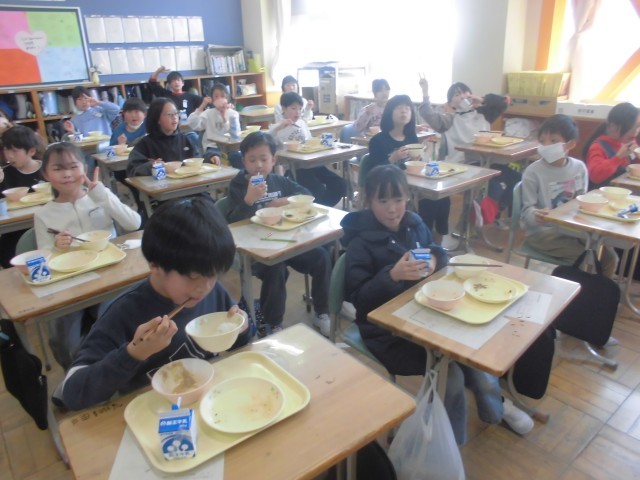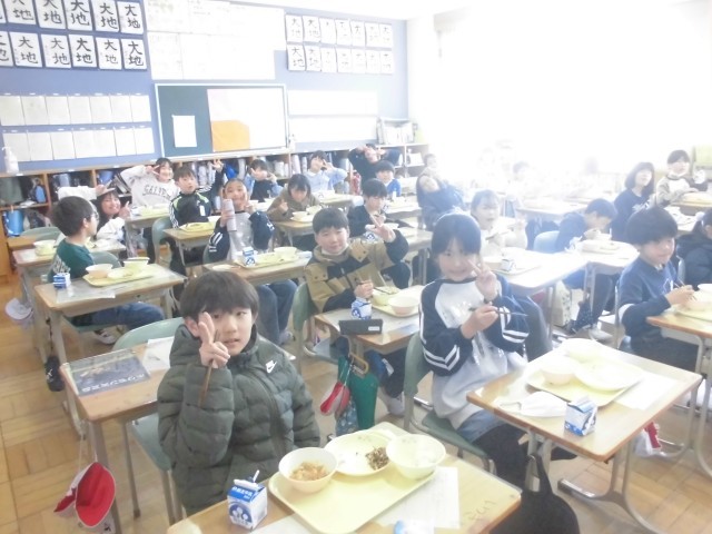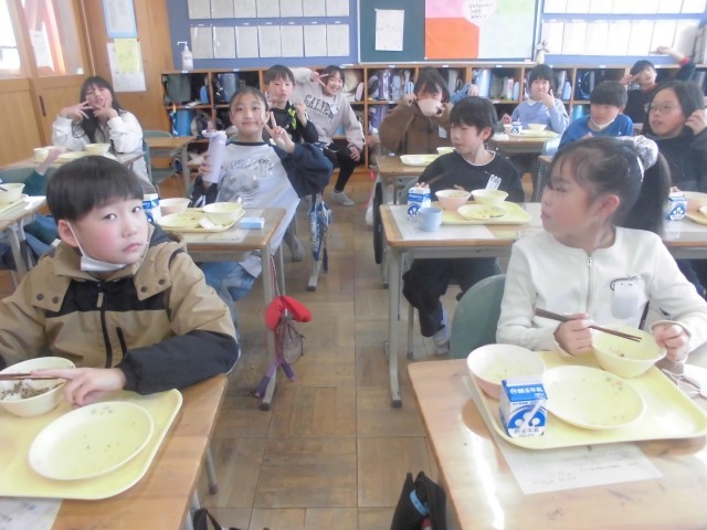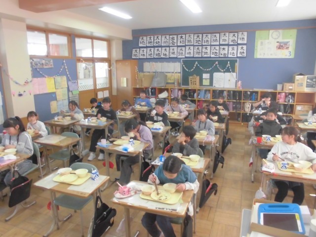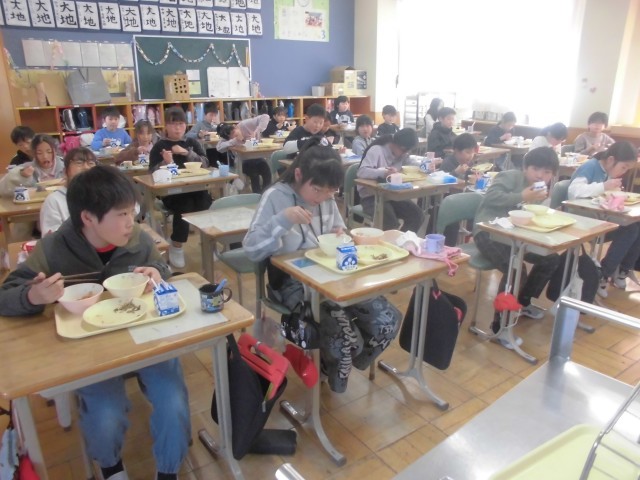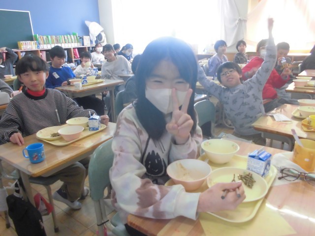 今日は、かみかみメニューということで、生揚げの肉味噌煮、青のりの小魚、小松菜のおひたし、麦ごはん、牛乳のカルシウムたっぷりメニューでありました。生揚げ肉味噌煮もご飯が進むおかずでありましたが、青のり小魚は大人気で、ごはんにかけて、もりもりかりかりおいしそうにいただくことができました。明日は、今年度最後の「きなこor抹茶」揚げパンで、子どもたちは今から楽しみなようです。