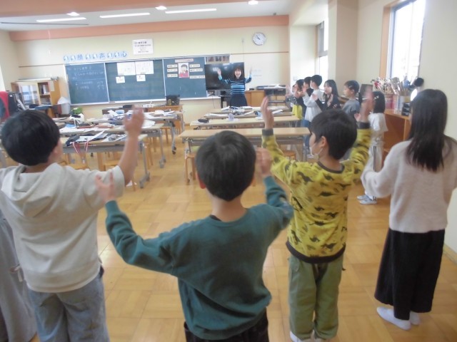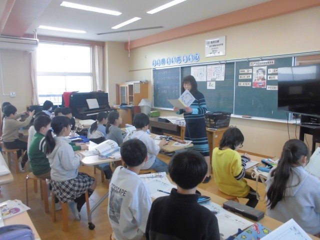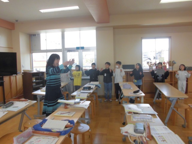 今年度、4年生から6年生の学級は、音楽専門の先生に授業をしていただきます。今日は4年生の音楽です。足ぶみや手びょうしをしながら、歩きながら、体全体を使ってリズムを感じながら楽しく歌い、笑顔いっぱいで活動しておりました。次の音楽の時間も楽しみですね。