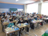 今回は、「まあちゃんのながいかみ」「ざぼんじいさんのかきのき」という2つのお話を聴かせてくださいました。1年生から6年生まで集まった子どもたちは、真剣に聴き入っていました。本好きの子どもたちが増えるといいなと思います。