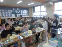 今日は6年生の各クラスにAETの先生が来てくださいました。今日の学習は動詞。ジェスチャーでAETの先生に伝えます。みんな工夫して、ジェスチャーで伝えました。AETの先生もわかってくれたようです。