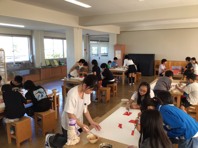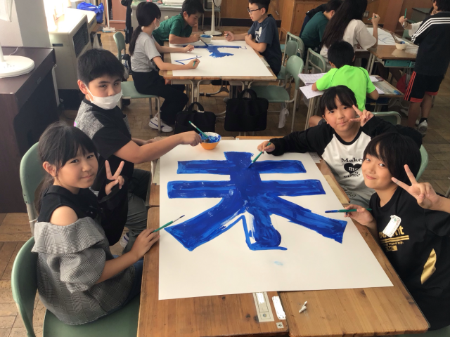 運動会に向けて、5年生が協力しながらスローガンの文字の色塗りを行いました。一文字ずつ丁寧に塗り進める姿から、仲間と協力する気持ちや集中力の高さが感じられました。