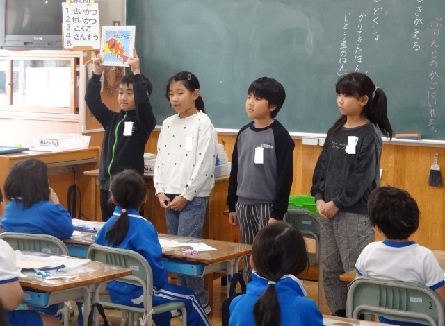 国語の時間に、1年生が本を好きになってもらえるような本を話し合って決めました。
