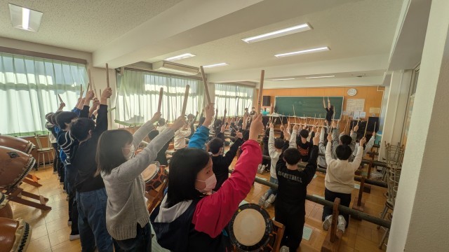 本格的に太鼓や竹を使った練習は迫力がありますね。