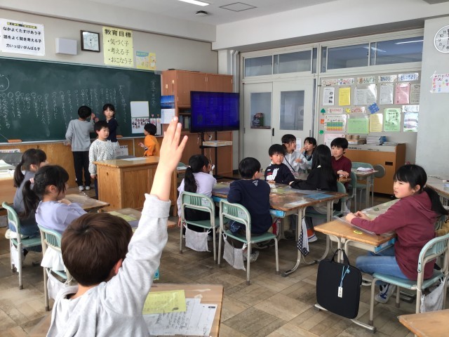 学活の時間に学級会をしています。今週のめあての反省、来週のめあて、お楽しみ会の計画などについて子どもが主体となって話し合いを進めています。