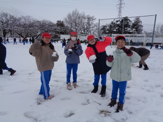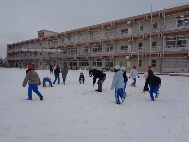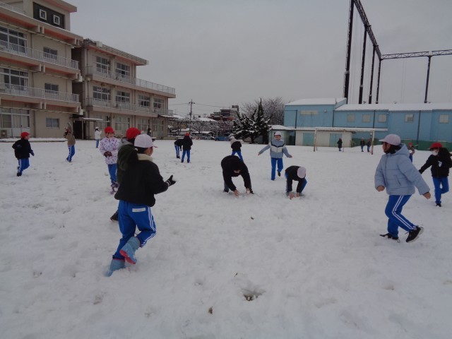 子どもたちも大はしゃぎ!雪合戦をしたり、雪だるまを作ったり、笑顔いっぱいの体育の時間となりました。
