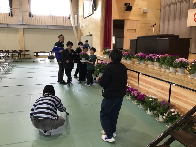 遅ればせながら、3月19日の5校時目に卒業式会場作成の様子です。保護者席の準備や体育館清掃、花の準備、階段や廊下、6年生教室の清掃をがんばりました。「次は何をしたらいいですか?」と進んで活動する姿に成長を感じます。おかげさまで、素敵な卒業式会場になりました。